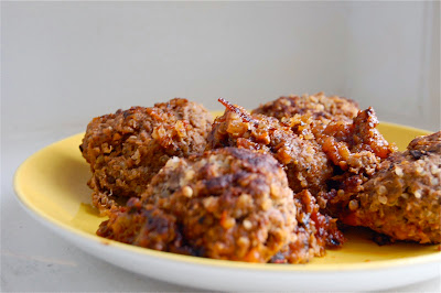Scoop up the mixture in 1/4 c. increments (or larger in you prefer) and form them into patties (give or take, 10 to 12) onto the skillet.